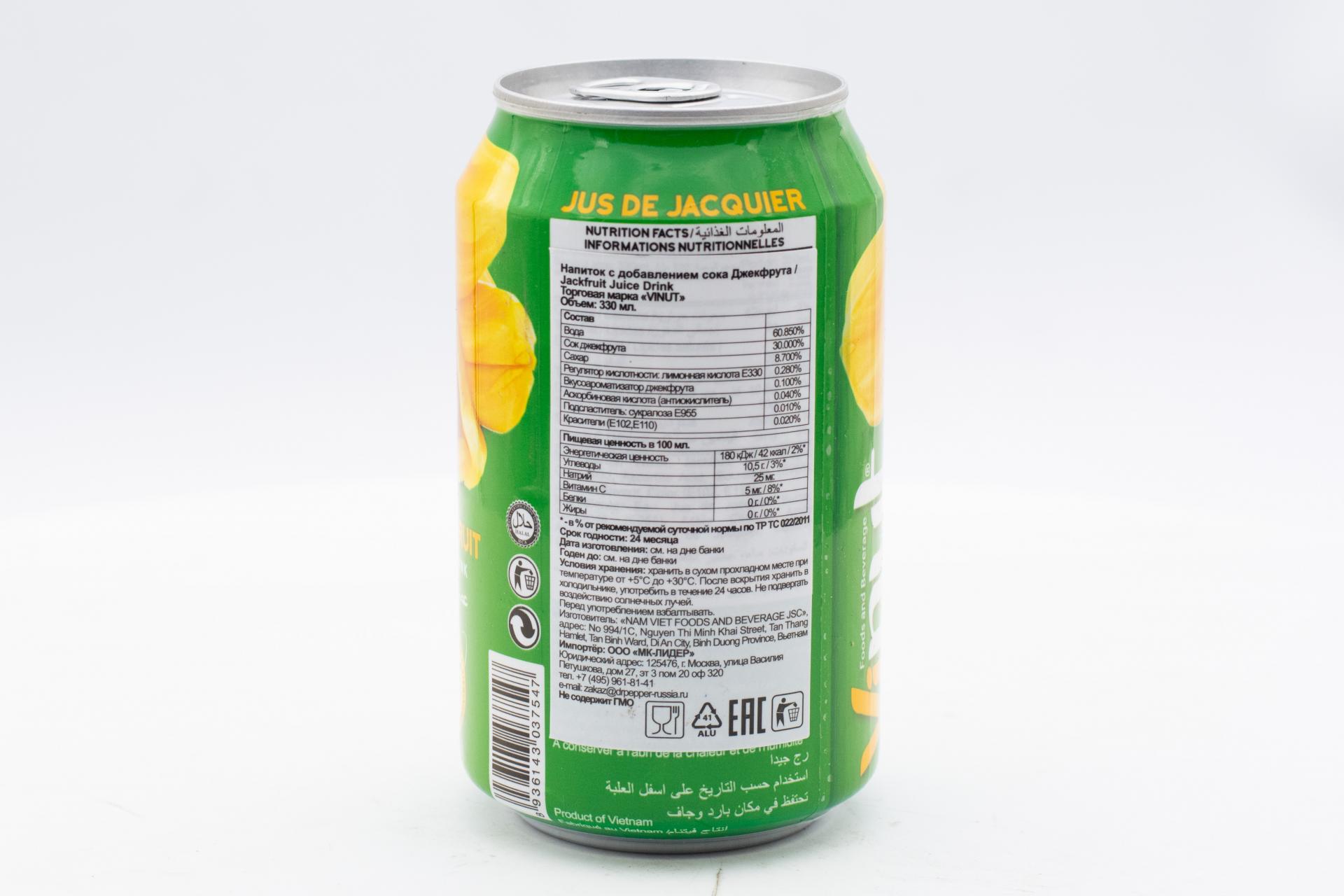 Напиток сокосодержащий Vinut с соком джекфрут 330мл49,99 руб. за штуку (в упак. 24 шт.) |