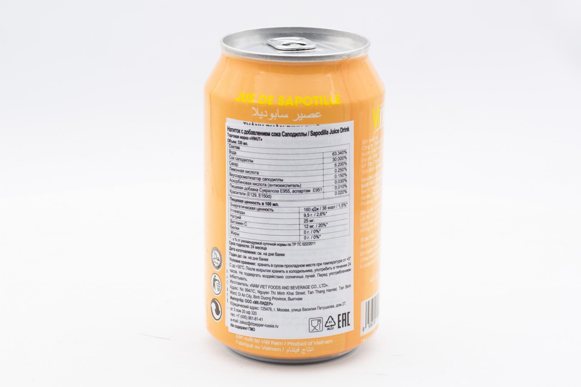 Напиток сокосодержащий Vinut с соком Саподиллы 330мл49,99 руб. за штуку (в упак. 24 шт.) |